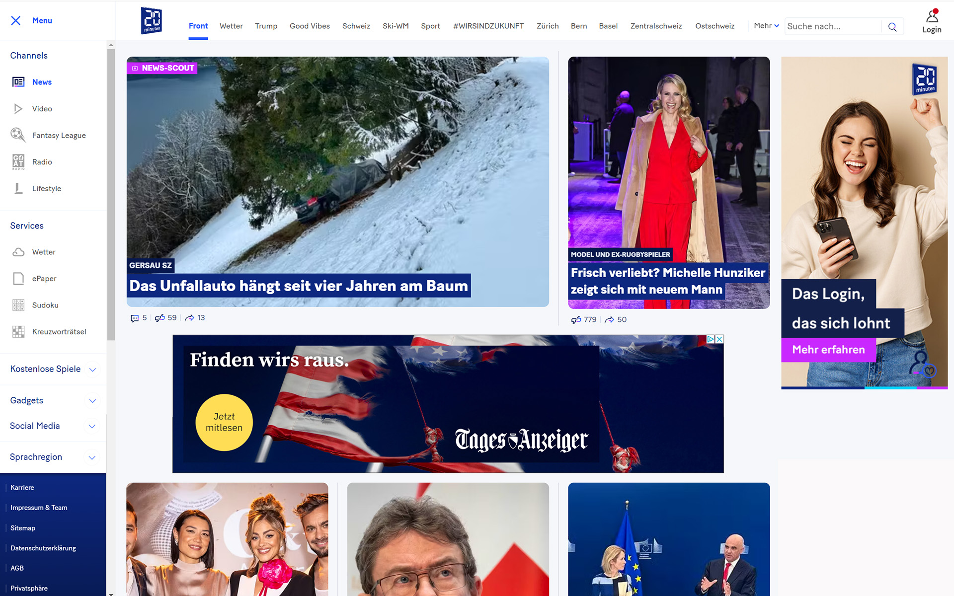 Du möchtest mit deiner Werbung eine junge und dynamische Zielgruppe in allen Sprachregionen der Schweiz erreichen? 20 Minuten , Ende 1999 für ein urbanes Publikum lanciert, ist heute eine reichweitenstarke Medienmarke. Sie bietet tagesaktuelle News aus der Schweiz und der Welt, spannende Unterhaltung und inspirierenden Content – und liefert damit Gesprächsstoff, der Leser*innen in der Deutschschweiz, der Westschweiz (20 minutes ) und im Tessin bindet.